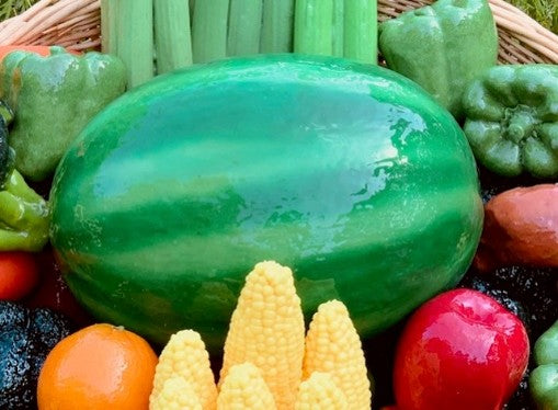 A handcrafted watermelon, each piece a unique masterpiece, screams summer fun! Crafted from 100% solid material, these watermelons are tough enough for rambunctious kids to play with in the patch. Their vibrant, juicy appearance makes them perfect for farmers' market props, farming, or gardening exhibits. Whether you're setting up a summer display or need a durable plaything, these realistic watermelons capture the essence of sunny days and sweet moments, making them a delightful addition to any setting.